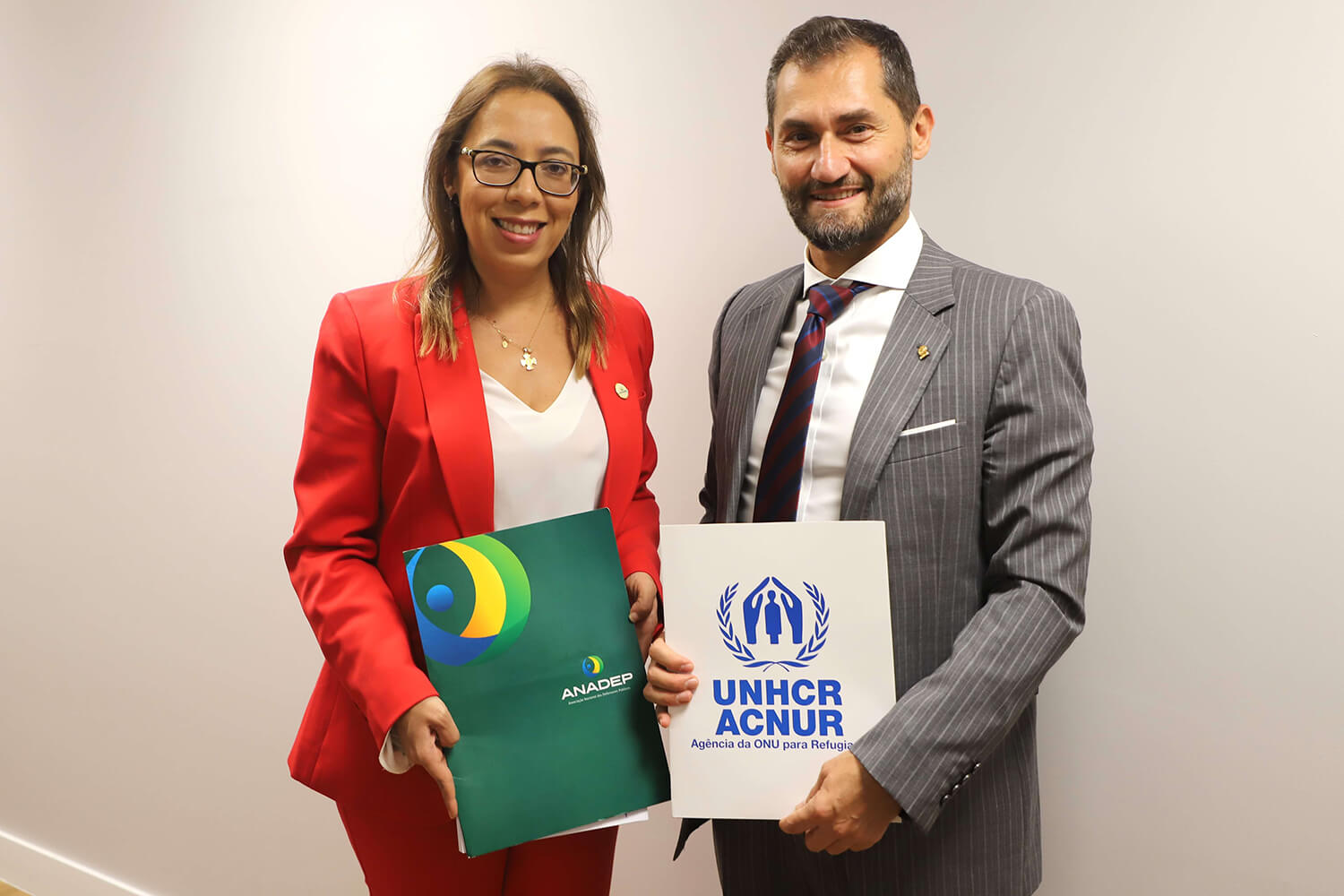 Na quarta-feira (27/9), a presidenta da ANADEP, Rivana Ricarte, e o representante do ACNUR no Brasil, Davide Torzilli, assinaram termo de cooperação técnica entre as entidades. O encontro aconteceu em Brasília. A presidenta da AGDP, Fernanda Fernandes, também acompanhou a reunião.